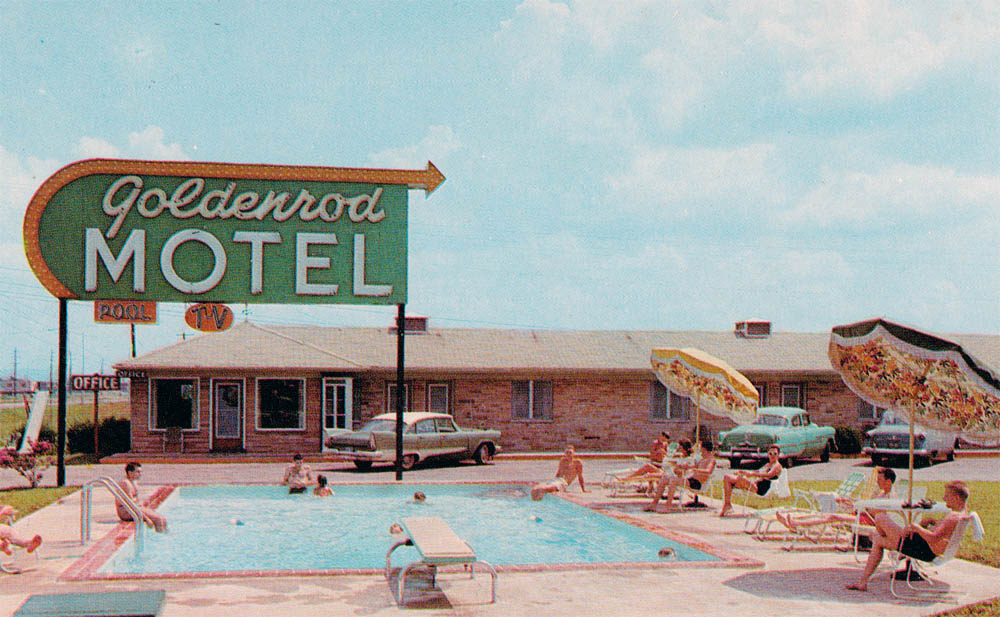 Seems rather insubstantial, but it did the trick; no doubt which way the Goldenrod laid. The lights, I’ll bet, scrolled around and rolled into the arrow. The card said the Goldenrod had “Telephones” and “Television” – which could suggest that each room had a phone but the entire motel had but one TV, and it was in the manager’s office, and no, you can’t watch it on account’a the game’s on. Huntsville's finest? Perhaps not, but any sign with an udder that says TV is okay by me.