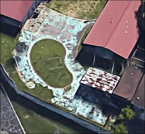 If you zoom out, you can see the kidney-shaped pool has been filled in. Too much work. Insurance. No one used it. Had to clean it. To hell with pools.