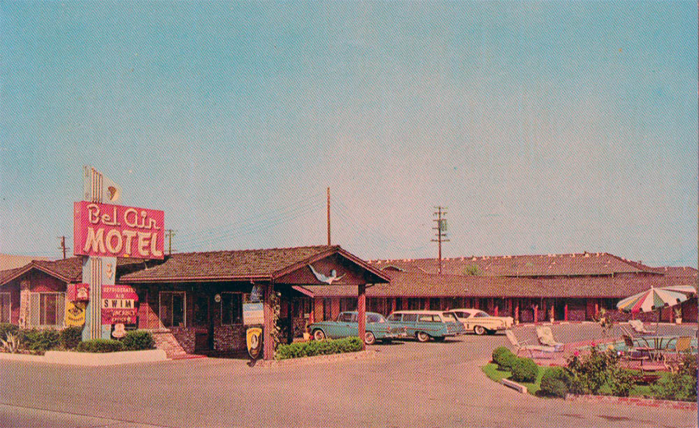 There’s a tale here. The owner-manager, according to the card, is the brackishly named “Evelyn Sourwine.” The message, handwritten in spindly old-lady lettering on the back of the card, says “Anyone interested in buying my motel please write to me at the above address for more information. Evelyn Sourwine.”