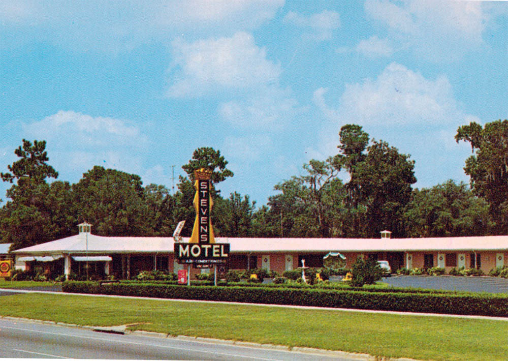 Owned and Operated by Jim and Norine Wickles at the time the card was printed. Possibly built by someone named Stevens. The name endures: it's still the Stevens!