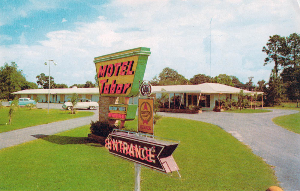 The Tabor was run and owned by the Tabors. (What did people named “Motel” call their mom & pop places?) “Nice and Quiet,” says the back.