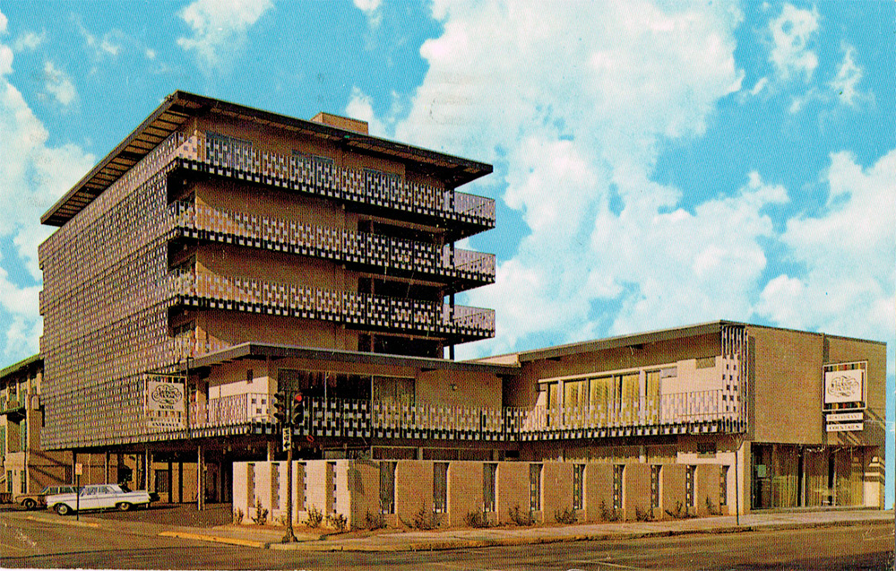 The brick wall looks like it could hide a pool, and it's possible they considered putting one right there. But it cost too much, probably. When you get down to it, a pool is something people like to know is there, and walk past, and see, and consider - but only a few use it. So why not give them something else that other motels don't, like an attached bar? That'll work. |