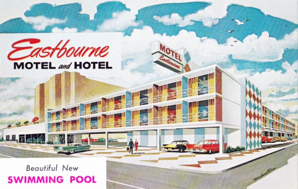 It stood on the corner of Pacific and Indiana. There's nothing there now. The color on the addition is eye-catching, if a bit harlequin-esque. Note the way they made the old wing look like some looming Moderne pile.