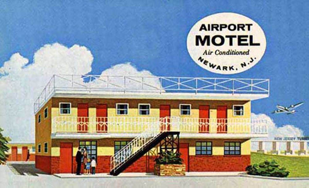 Newark, eh? You don't say. The details are sketchy, and seem to concern themselves mostly with proximity. "300 yards from Exit 14, NJ Turkpike," says the back. "Twenty minute bus service to Times Square."