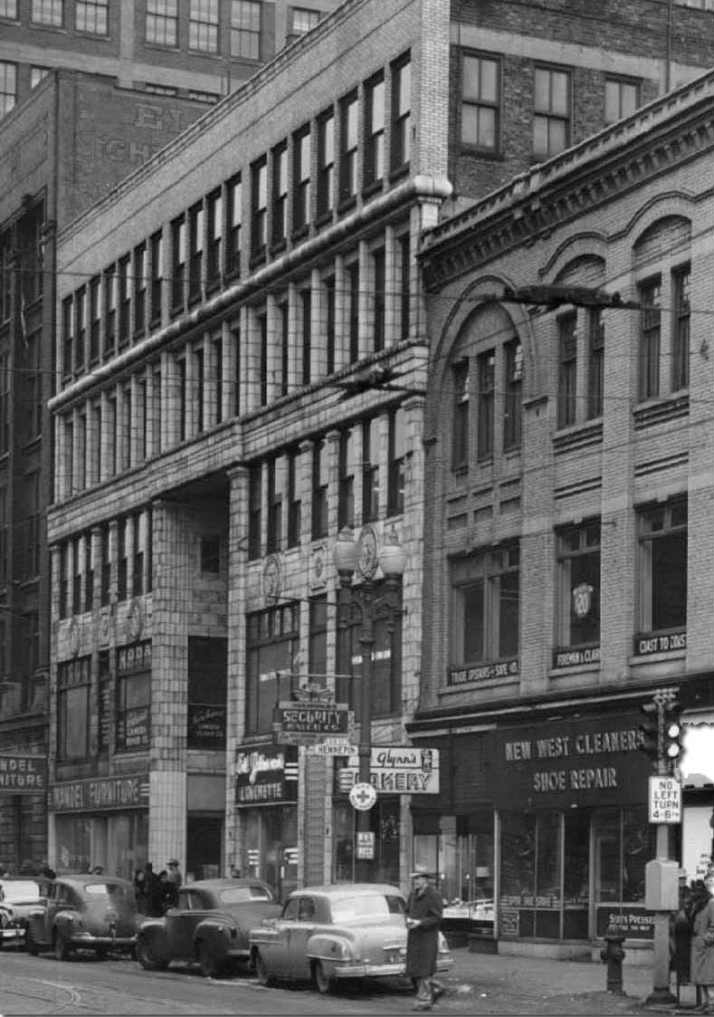 Note the signs for Ed Johnson's Luncheonette, long gone, and McGlynn's bakery. The latter is still with us - it's a local supplier to department and grocery stores, and still enjoys a minor reputation as a local baker.