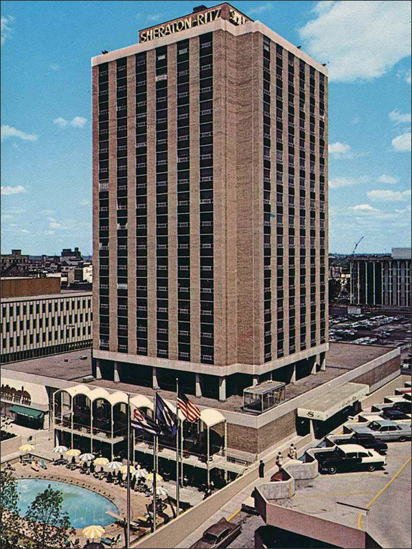 It was part of a new order for downtown, most of which you can see in these pictures. On the left, the golden library; on the right, the Northwestern Mutual building. A modern car-park in the foreground. A pool for lounging in the hot months. Eyebrown awnings like you’d see in the ’64 World’s Fair. |