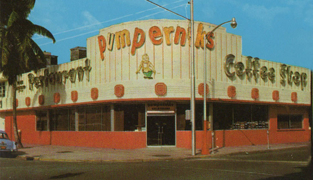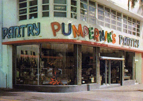 The card also notes that Pumpernik's is "The home of the Pumpernickel Bagel." I wonder if anyone gave any thought to the different spellings. Probably no one. K, Ck, what's the difference. People know what you mean.