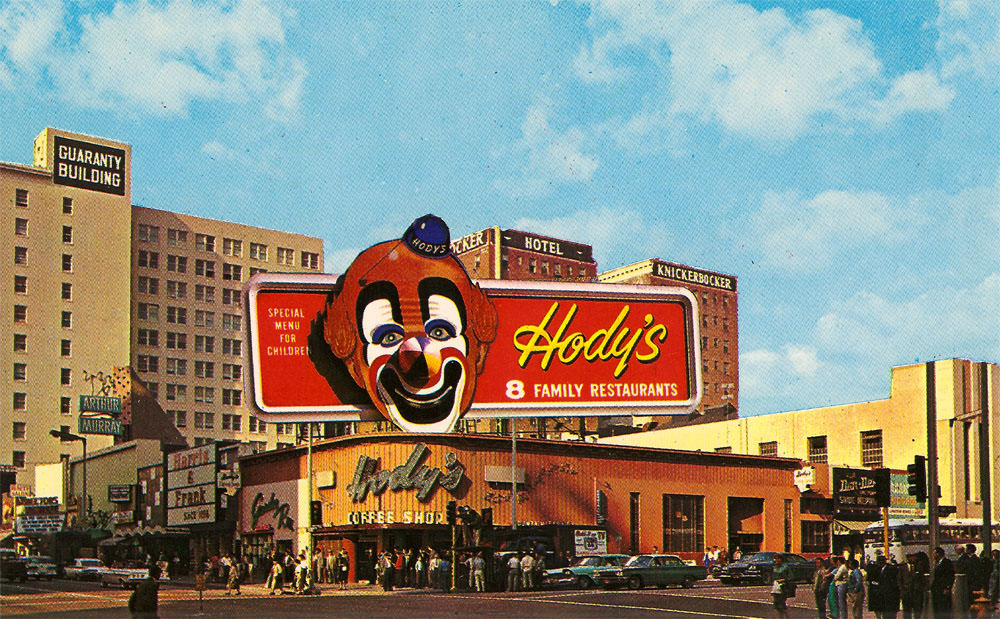 This is actually quite a storied locale, with much restaurant histor packed into that curved corner. Pig 'n Whistle, Melody Lane, HoJo - and, of course, Hody's.