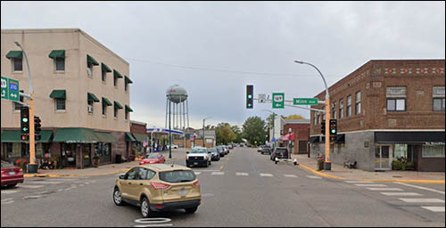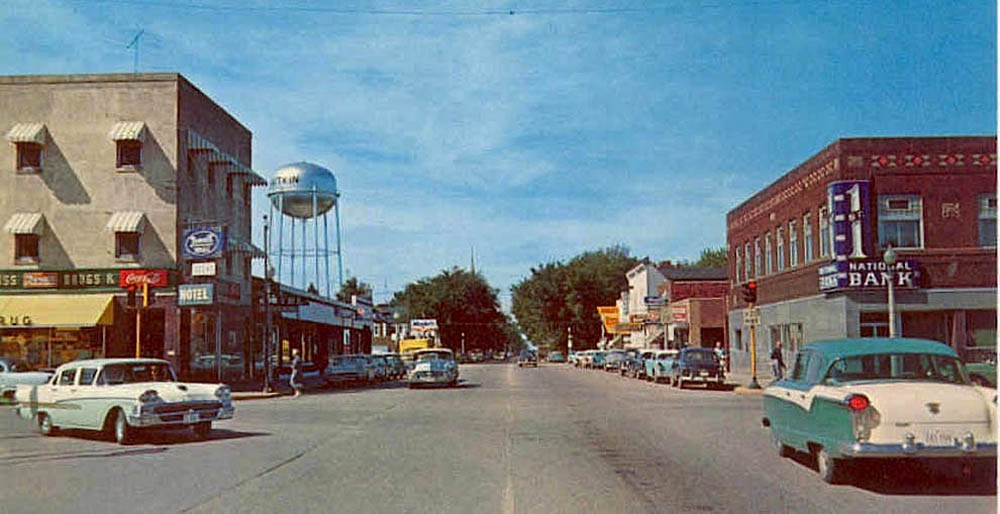Note the modernization on the bank building: they resurfaced the whole thing with granite or marble. It gave downtown a little lift, but it divorced the bottom floor from the top. Drive around it, zoom in - you'll see some nice trim that suggests its owner was willing to spend a bit more to beautify the little town. |
