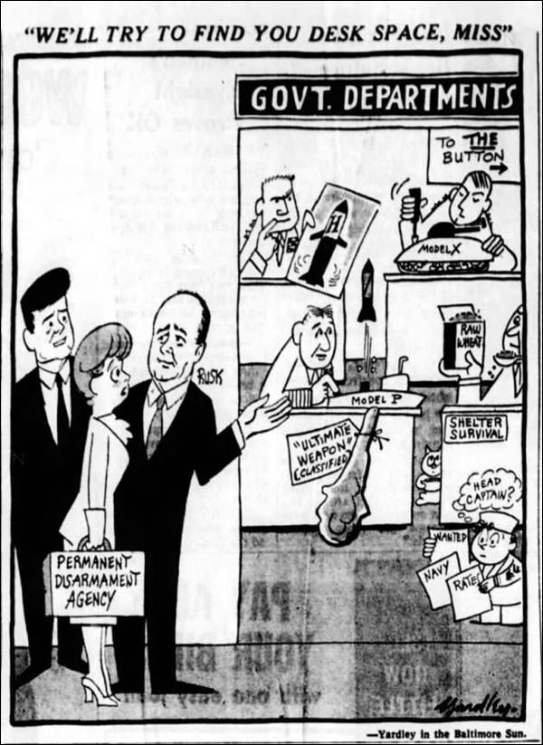 I wonder if they had wooden boards around baseball games in 1961, or whether the cliche had long outlived the real thing. Perhaps the most incompetently designed cartoon I’ve ever seen: