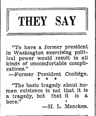 Quotes of the day. Silent Cal, wise as usual. As for Mencken, well, typical. | |