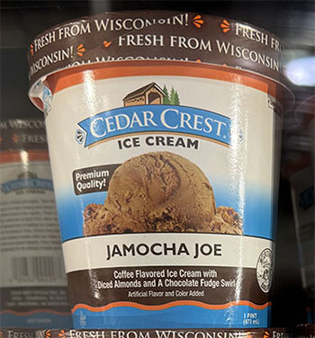 And here we have an uninspiring muddle-jumble. Glad they put a picture of ice cream on the label, though; contents would be a complete mystery otherwise. Premium Quality! Had to add that little flag, lest anyone wonder why you're paying more. |