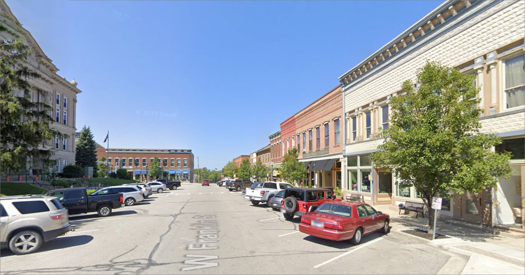 The population was 1996 in 2020. Its accomplishements and status may be great, but the Wikipedia entry's first paragraph says it's "approximately 15 miles closer to Terre Haute than to Bloomington." They had a big fire ion 1914, so most of these structures may date from its reconstruction.