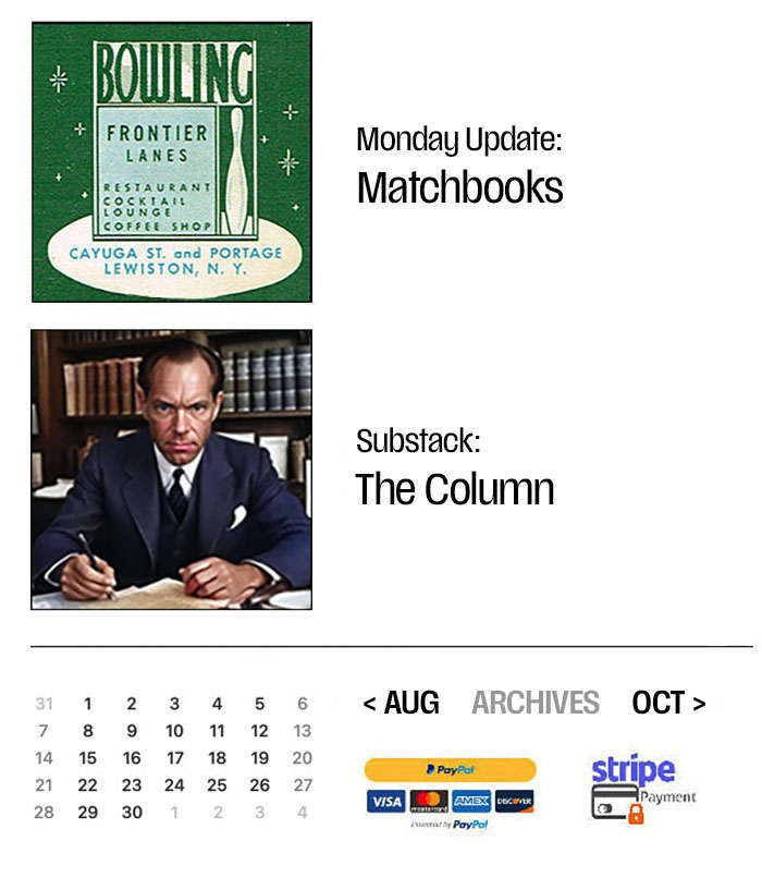 That will do for today. Matches and a free Substack await; it'll be up around eleven. Thank you for your patronage, as always.
