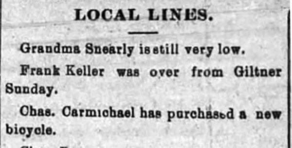 Typical front page news: Grandma low, bike purchased.