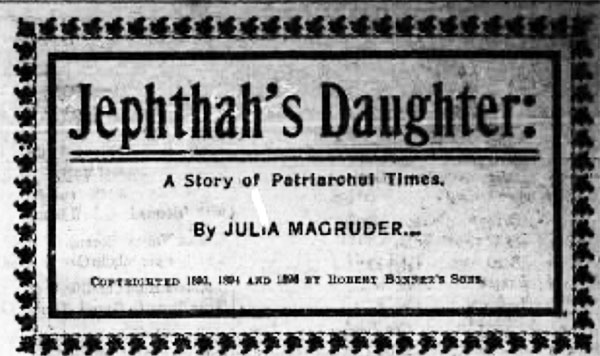 Julia Magruder (September 14, 1854 – June 9, 1907) was an American novelist. Most of her novels are love stories in which the heroine must face obstacles in pursuit of her goal to find true love. Several of her novels were serialized in the Ladies' Home Journal. A week before her death she received the award from the Académie Française for which she had been nominated a year earlier.