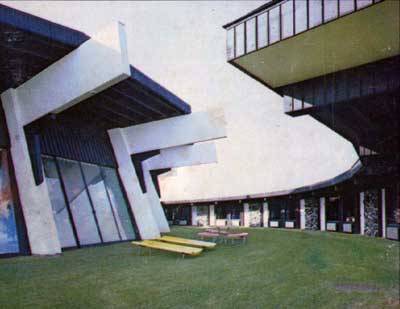 The windows are gone. I'm curious about the rock around the outside of the pool; was that added later? Because I get the feeling no one did anything with this place after it was built. They vacuumed it, of course - that took two weeks, with crews working 'round-the-clock on special shag-strength machines.