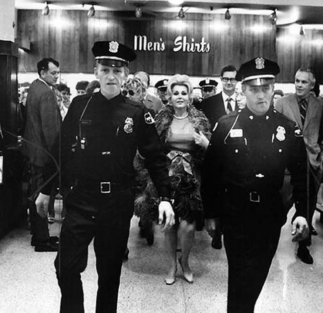 Being a policeman occasionally has moments of sheer pure glamor - such as when you're escorting a mascarared ninny through a Minneapolis department store, guarding her against the throngs of dangerous fans. Note the way these officers can barely control their enthusiasm; also note the gentleman on the right who cannot believe he actually has a chance to examine the gams of a Gabor.