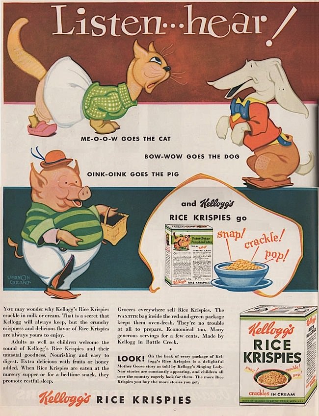 Vernon Grant, according to wikipedia, was an American illustrator born in 1935. So I don't think that's him. No, it's Vermon Simeon Plemion Grant, born in 1902; he was 33 when he did this, and was so well-regarded by Kellogg's for his "Snap, Crackle, Pop" art they sent him on a world tour. He died in 1990.