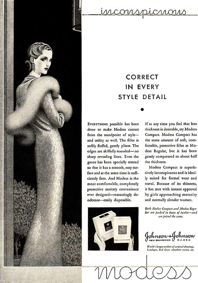 A beautiful and elegant ad. If you didn't know the brand, you'd have no idea what it's selling: Tampons and pads suitable for formal wear.
