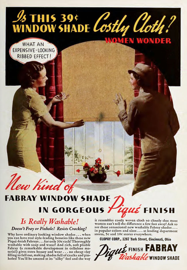 This is what you had before plastics roared into the home. Clopay's name was a portmanteau of Cloth and Paper, and now they make neither: the company gradually turned into a high-quality garage door manufacturer. |