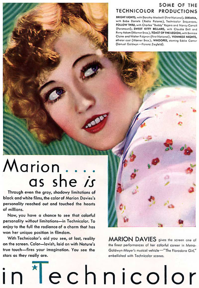 We don't think of "Technicolor" as something you'd see in 1930, do we? But the Technicolor Motion Picture Corporation was founded in 1914, and the first Hollywood picture with color scenes, "The Toll of the Sea," was released in 1922.