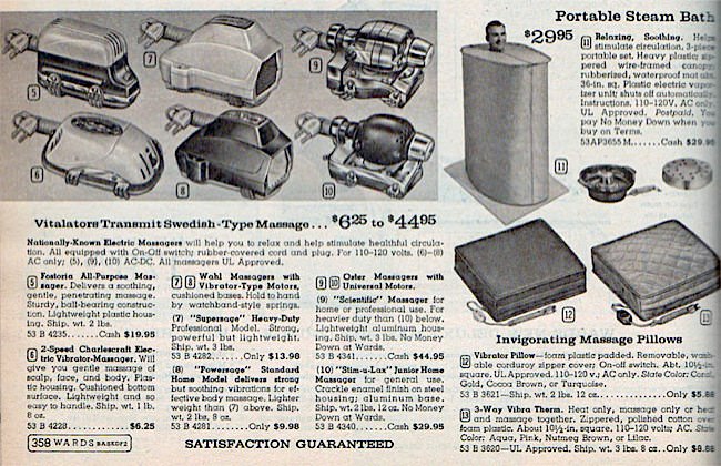 There’s also a portable steam bath, for those times when you wish you could immobilize your husband, and wish you weren’t tied down to a static, immovable steam bath.