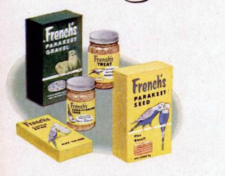 You had two choices back then: French’s seed and Hartz Mountain. Which one you used depended on where you bought the bird, and which manufacturer’s reps had plied the owner with free pamphlets on How To Have Fun With Your Parakeet and nice displays. It was a bitter, nasty war, one of those forgotten conflicts that simmer a half a world away.