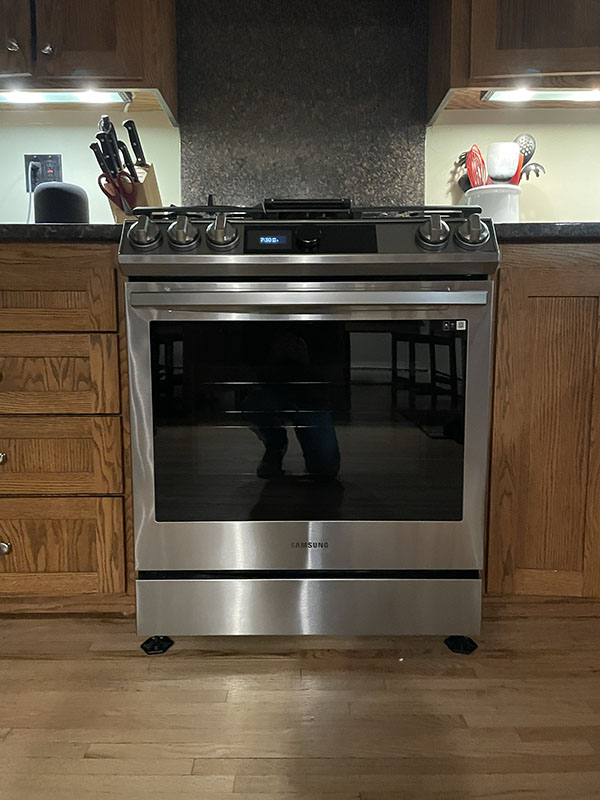It’s here. The installers said they couldn’t do it, because of the gas pipe. Heavy sigh. Yes, that should’ve been in the notes. He said well, I’ll see what I can do. And he did it. The long domestic nightmare is over! I can make full-sized pizzas once again!