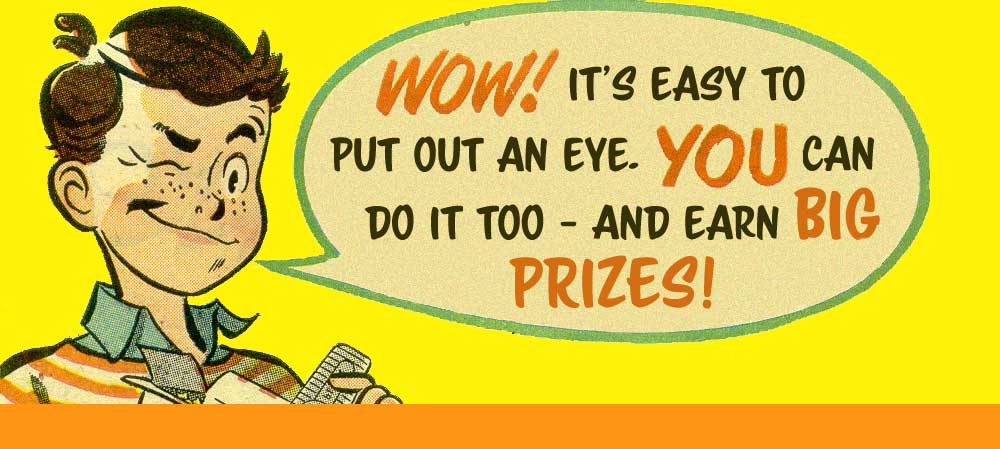 This site is devoted to the advertising in old comics. It begins with illustrated pseudo-comics, moves on seed-and-salve selling, muscle ads, guns, cereal, candy, bikes, the ads of the 60s and 70s (my childhood, and hence of great interest to the world) and finally, ten tons of stuff that doesn’t belong elsewhere.