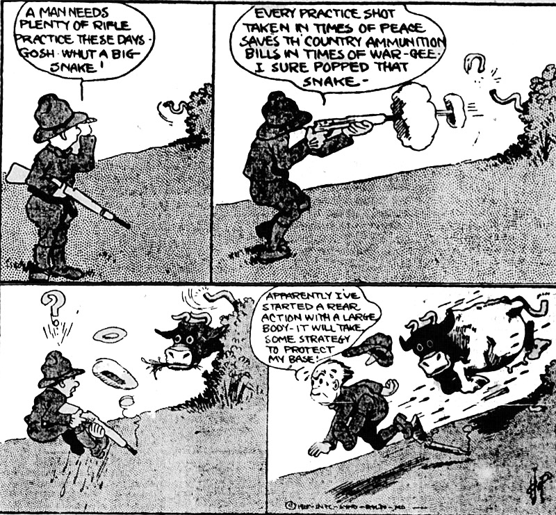 | It's October 10, 1915. There's a war on. A man needs plenty of rifle practice, so why not head out to the edge of town and fire at miscellaneous, poorly-understood objects? |