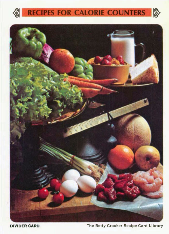 You'd think the preceding cards would help anyone reduce. One look at the pictures, and you're off your feed for an hour or two. But the collection included some special diet recipes to help you become a lesser person.