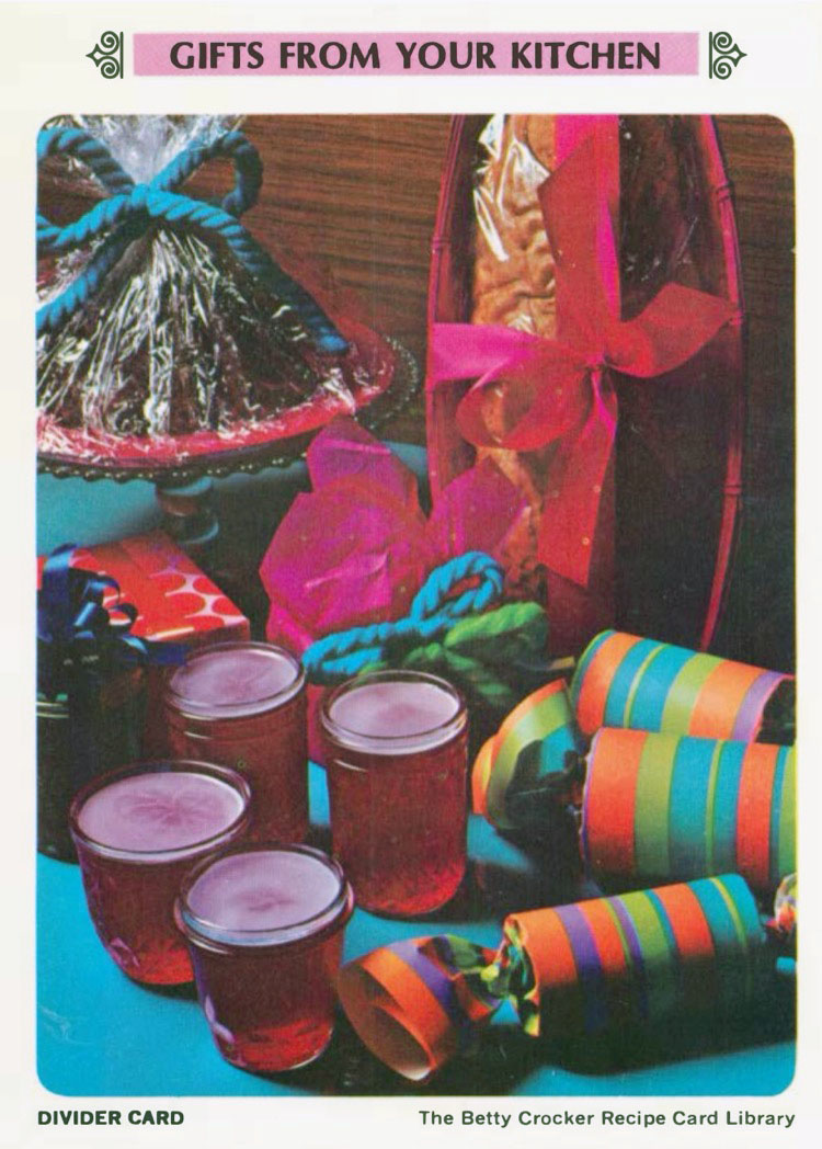 We're deep in recession territory if you're giving your friends wrapped canned goods for thier birthday. What is that thing on the upper right? Shortbread Tut in his own coffin?