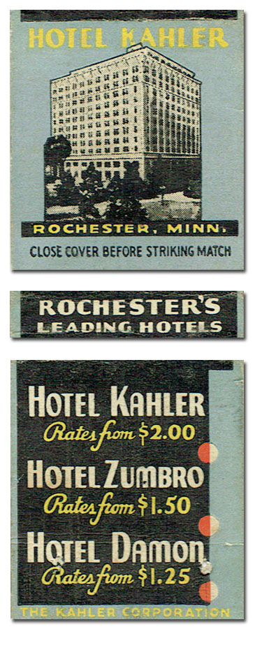 The Kahler company - haven’t we been over this already? Well, once more, then - was a local chain started by the Kahler brothers at the behest of the Mayo doctor bros. It still stands, but the chain itself has shrunk to nothingness.