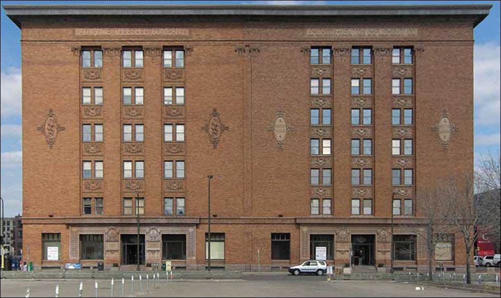 The buildings live on the edge of downtown, and were once close to the industrial center. That's moved away, marooning them by a parking lot, but the area's being redeveloped in 2014-2016, so they'll probably be converted from offices to lofts, with fashionable cafes in the ground floor.