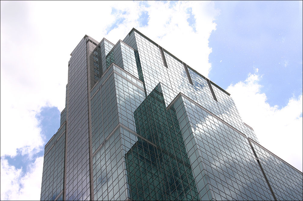 This building shouldn’t be as good as it is. At first glance, it could be something from the late 70s - a glass slab, a plain box. How could anyone build something like this in the late 80s? (They almost didn’t, as you'll see by another picture on this site.) Context is everything, though. This building stands on Nicollet, in line with the gorgeous golden Norwest Tower, two blocks from the big blue IDS Center. It’s both of these buildings, and neither. The setbacks mirror Norwest; the glass curtainwall and detailing is a nod to the IDS. Studded up and down the tower are grey accents that give it a character all its own. I’ve always liked this one.