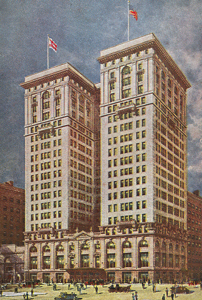 Another view. The identity of that little tiny building between the bank and the New York Life building has plagued me for years. According to Larry Millet's "Lost Twin Cities," the NYL company owned the building, and used it to ensure no one built anything too close.